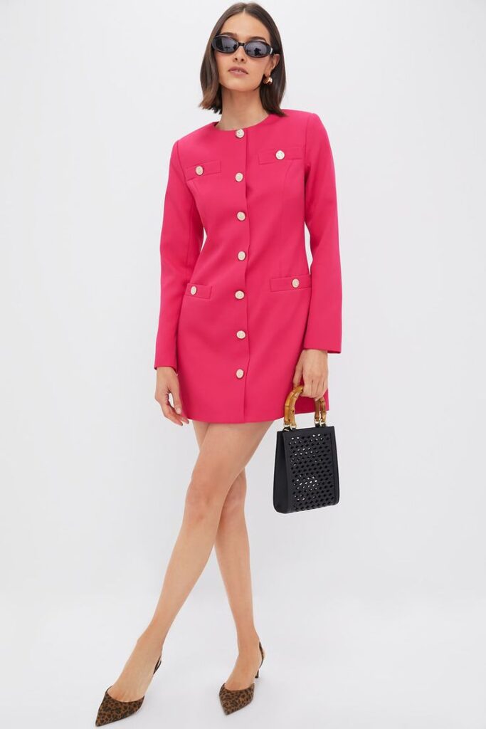 A smart tailored blazer + high-waisted pants combo will never let you down. Go for minimal tones like beige, navy, or black.